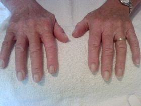 NA : Over de acryl is met gel een iets dekkende huidskleurige laag aangebracht, zodat de beschadigingen mooi gecamoufleerd worden.